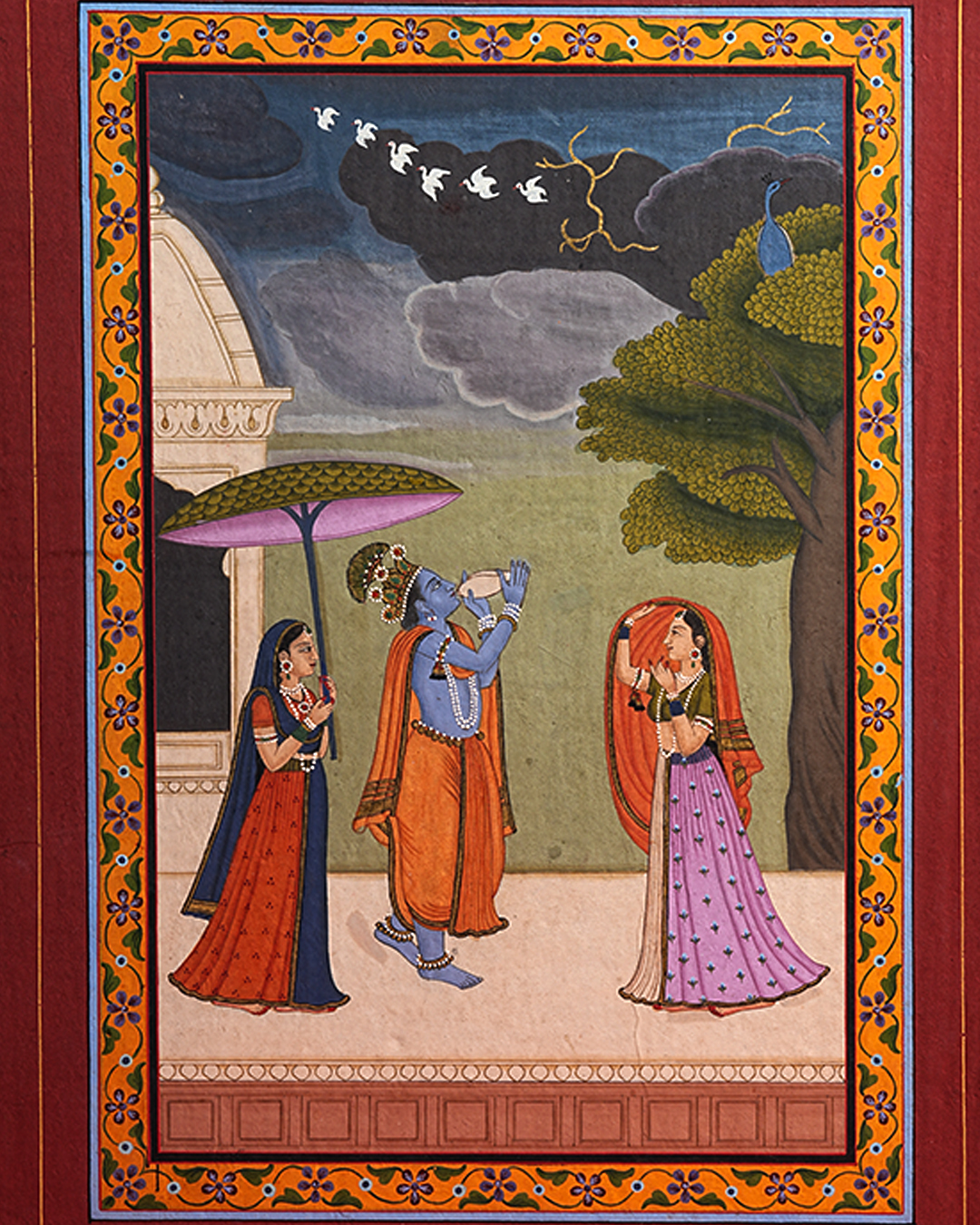 Traditional miniature paintings like this were created using natural mineral pigments, handmade wasli A4 paper, gold or fine detailing pigments as required, and ultra-fine handmade brushes. The process demanded extraordinary patience and precision – often taking weeks or even months to complete a single artwork.