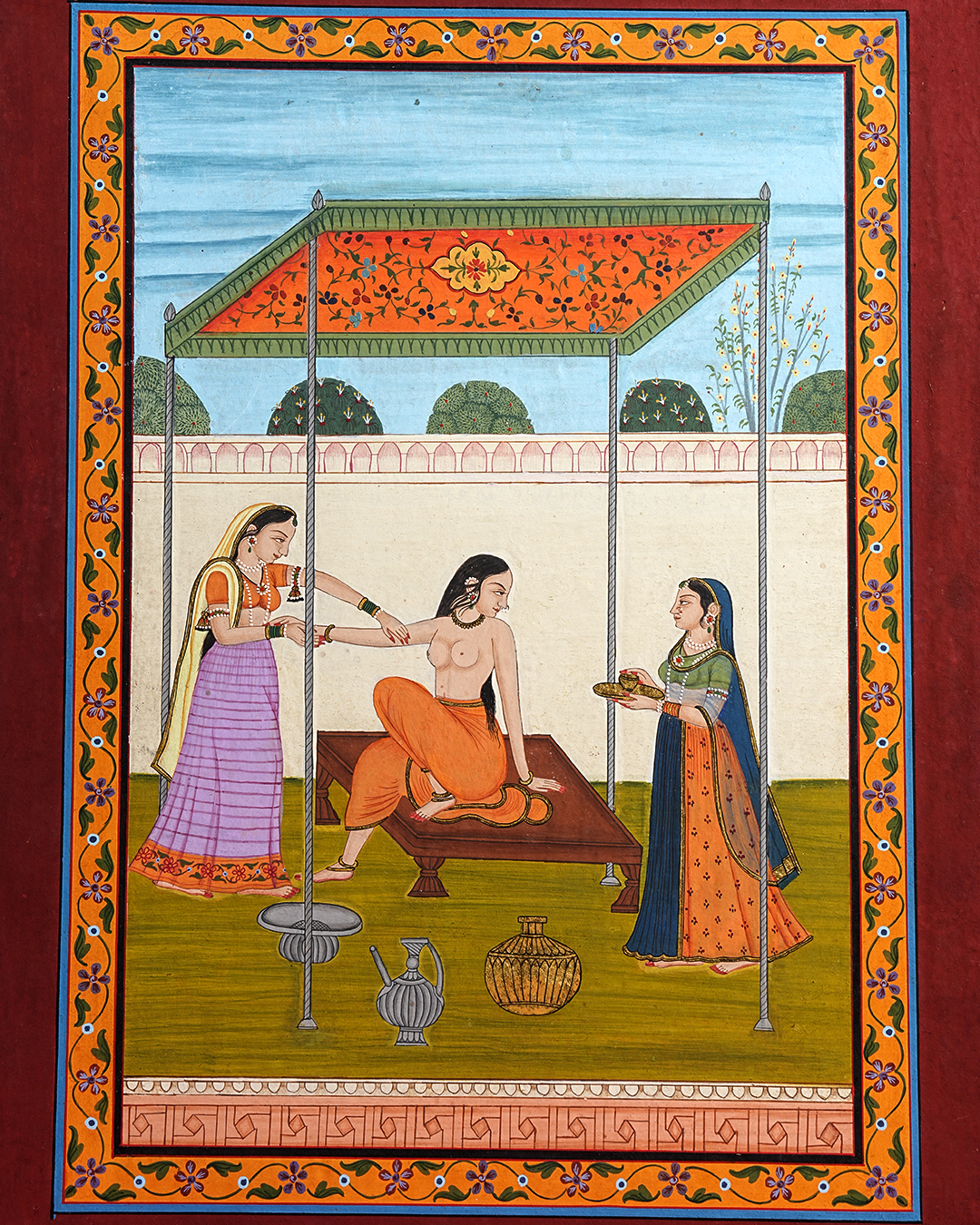 Traditional miniature paintings like this were created using natural mineral pigments, handmade wasli A4 paper, gold or fine detailing pigments as required, and ultra-fine handmade brushes. The process demanded extraordinary patience and precision – often taking weeks or even months to complete a single artwork.