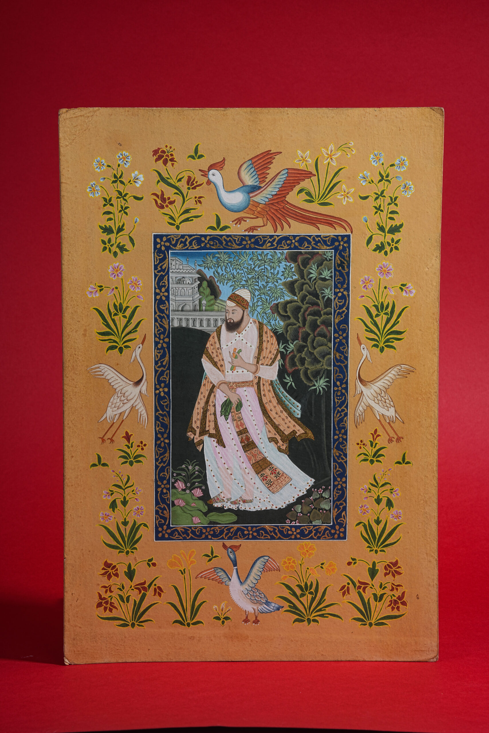 Traditional miniature paintings like this were created using natural mineral pigments, handmade wasli A4 paper, gold or fine detailing pigments as required, and ultra-fine handmade brushes. The process demanded extraordinary patience and precision – often taking weeks or even months to complete a single artwork.