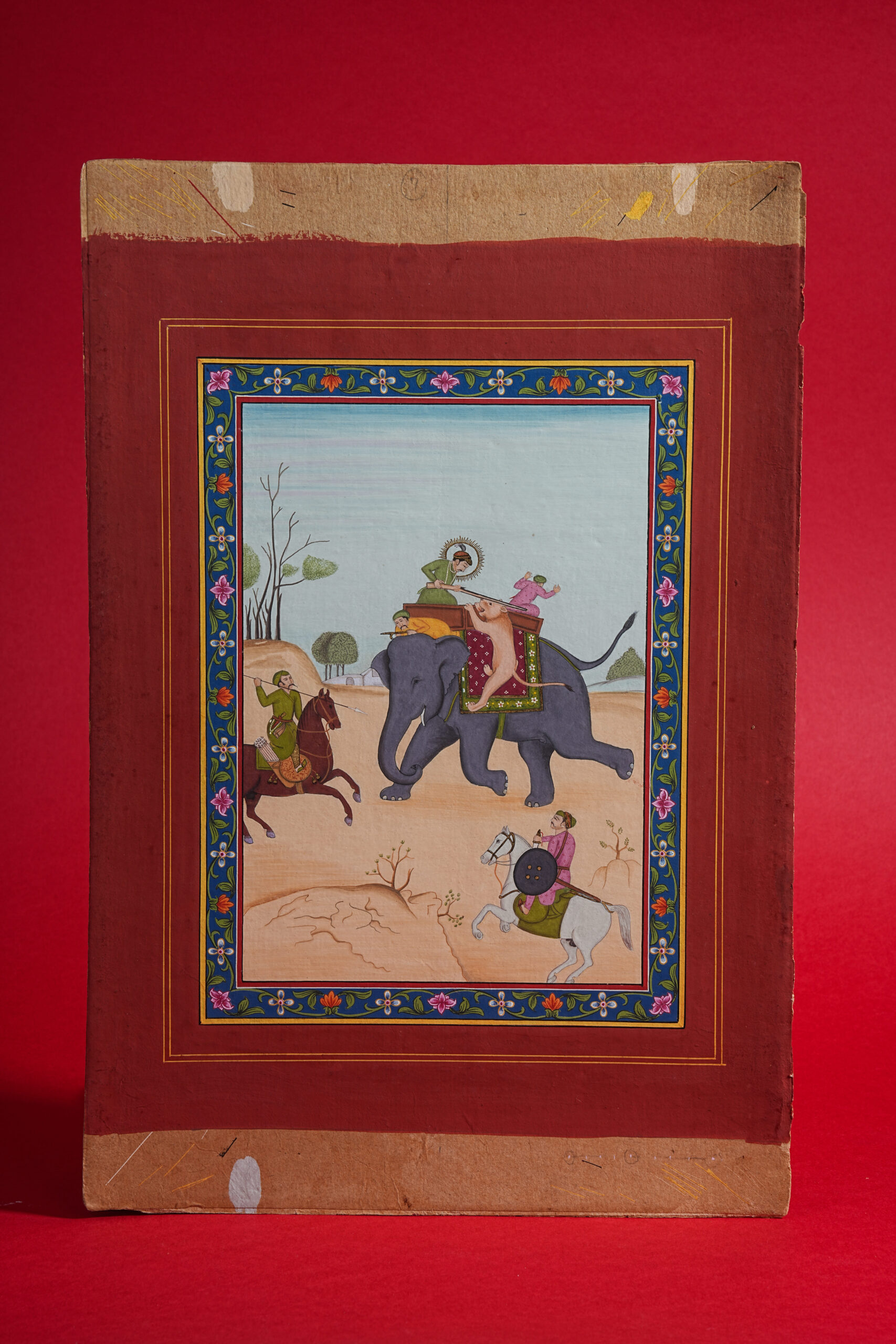 Traditional miniature paintings like this were created using natural mineral pigments, handmade wasli A4 paper, gold or fine detailing pigments as required, and ultra-fine handmade brushes. The process demanded extraordinary patience and precision – often taking weeks or even months to complete a single artwork.